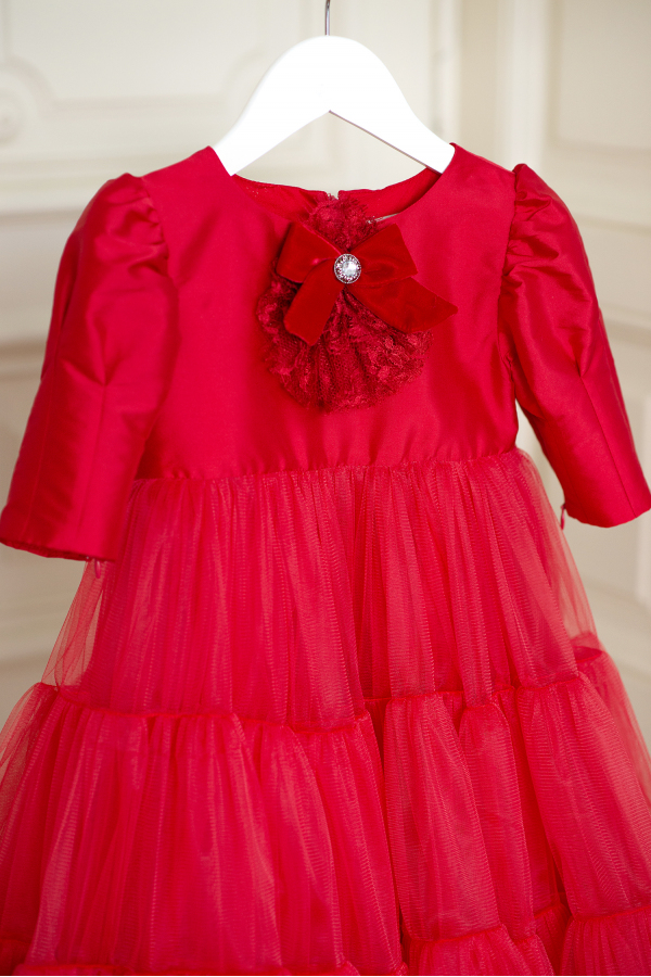 Red Sarah - Rochie delicata tip tutu cu jabou din dantela si catifea