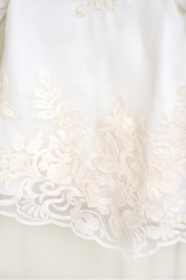 - exterior: voal de matase naturala brodata.