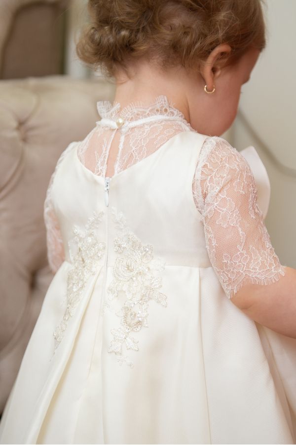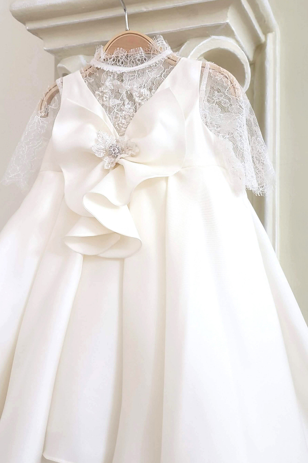 Symphony of Dreams - Rochie ivoire copii cu trena, din tafta de matase, cu detalii din dantela Chantilly