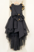 Black Bird - Rochie spectaculoasa din tul, cu trena si aripi realizate manual, din pene negre si aurii