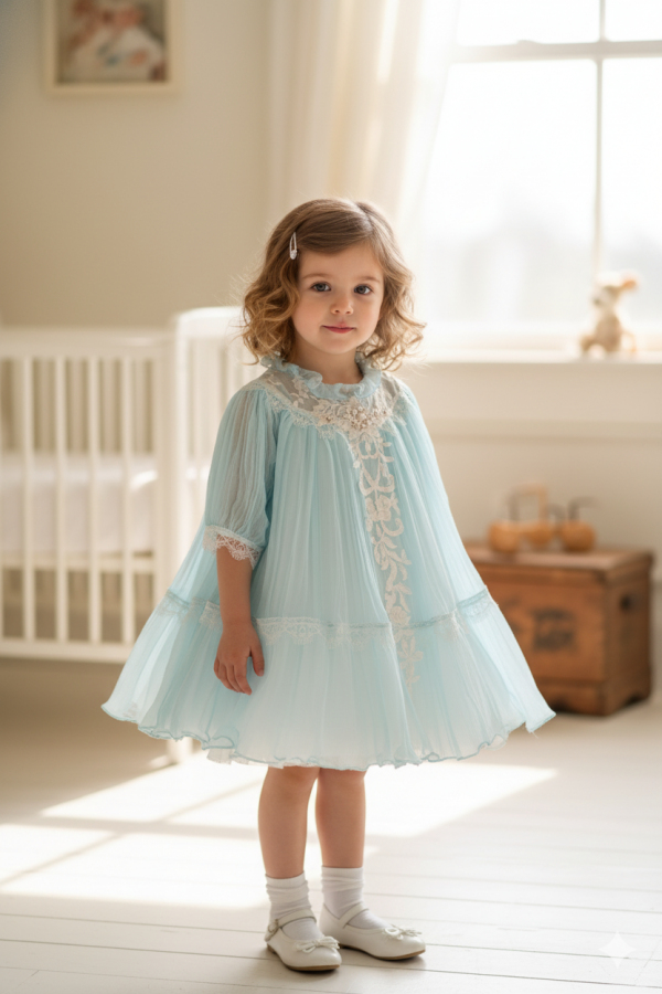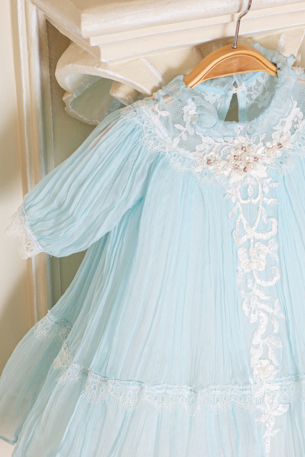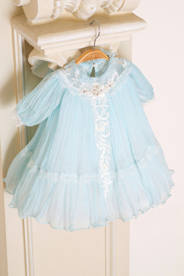 O rochie gratioasa si fluida, conceputa atat pentru bebelusi, cat si pentru micile printese. Mangaierea blanda a matasii ofera o senzatie incantatoare intr-o zi calda de vara. Acest model versatil este perfect atat pentru ceremoniile de botez, cat si pentru domnisoarele de onoare, asigurand eleganta pentru orice ocazie speciala.