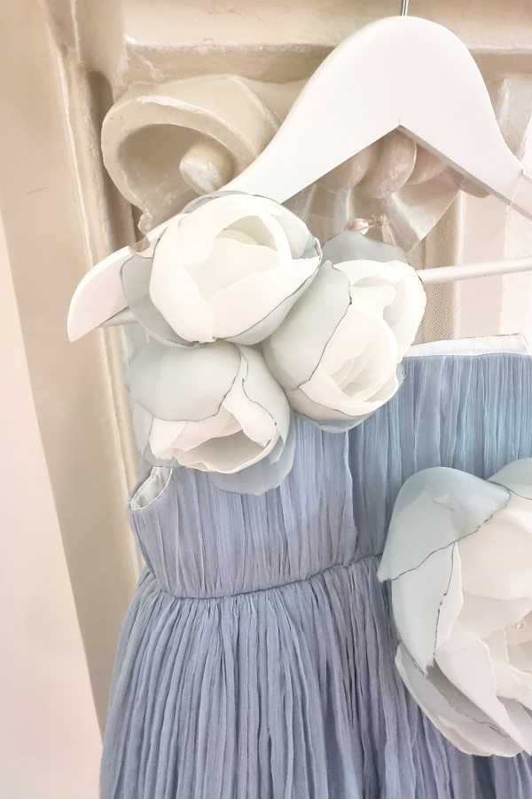 Rosie - Rochie vaporoasa din voal de matase, decorata cu flori lucrate manual