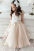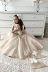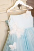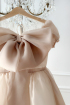 O rochie uimitoare pentru fete, realizată din organza de mătase naturală pentru o siluetă ușoară și grațioasă. Funda supradimensionata de la spate adaugă o notă dramatică, în timp ce fluturi delicati lucrați manual plutesc în jurul rochiei, sporind farmecul de vis al design-ului.