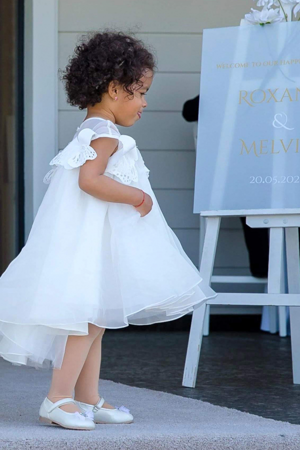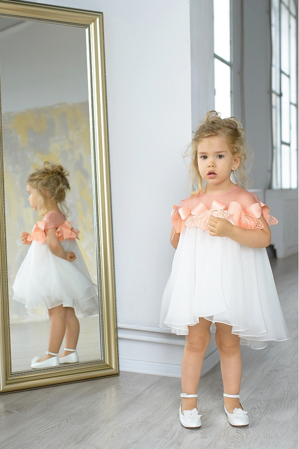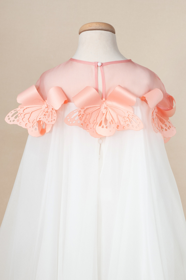 Rochita pentru fete, din organza de matase naturala, decorata cu fluturasi din tafta. Modelul este fluid si foarte lejer de purtat, datorita croielii. Colectia "Silk Butterflies".