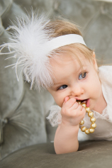 Princess Pearl - Rochita lunga de botez bebe, in stil catolic, din dantela cu buchetele mici de flori