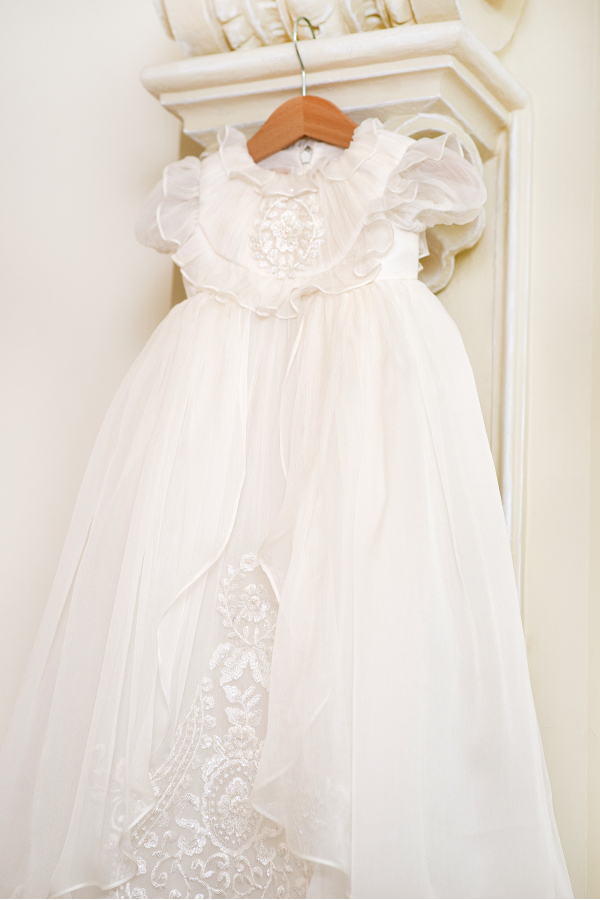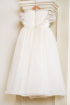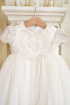 Aria - Rochie lunga de botez, in stil catolic, din voal creponat de matase si dantela pretioasa