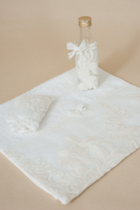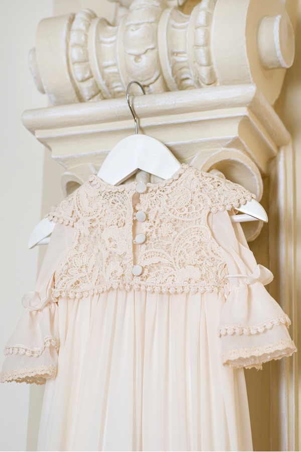 O rochie de botez pentru fetițe, realizată in stil catolic din voal de mătase naturală. Un design simplu dar minunat, împodobită cu accente de dantelă macrame si volane. Boleroul delicat din dantelă sporește eleganța rochiei, făcând-o alegerea perfectă pentru o ocazie atât de prețioasă și memorabilă.