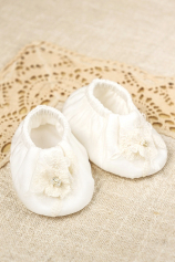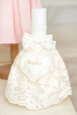 Abigail - Rochita de botez in stil catolic din voal de matase si bolero din dantela macrame
