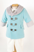 Palton elegant pentru baieti, din stofa bleu turcoaz, cu guler si maneci din blanita ecologica gri deschis.