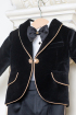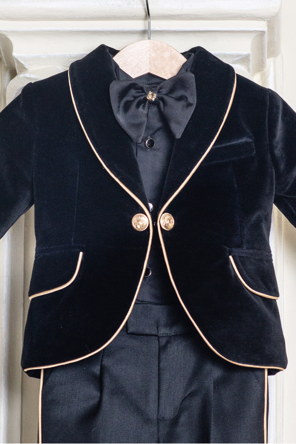 Midnight Majesty - Sacou elegant pentru baieti din catifea neagra, cu nasturi si detalii aurii
