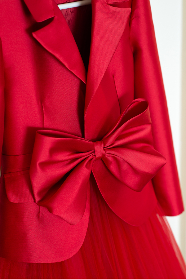Eternal Red - Sacou fete din tafta rosie, decorat cu o funda detasabila