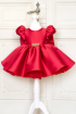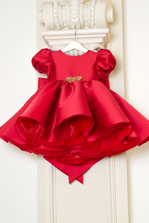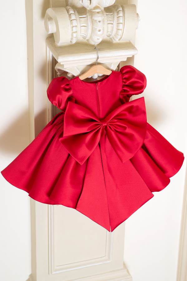 Fairy Bell - rochie copii tafta Mikado rosie, cu o funda mare la spate