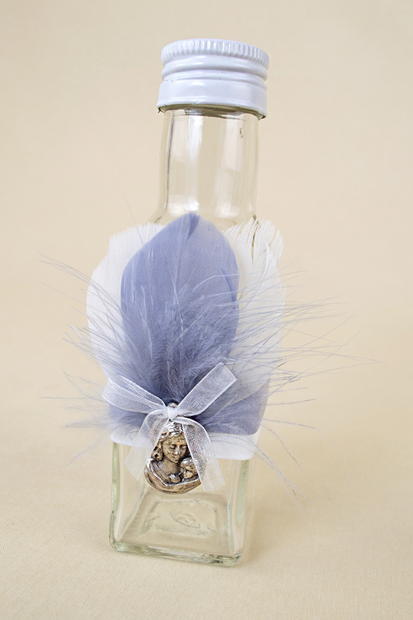 Set pentru preot decorat cu pene si ingerasi. Setul contine: un prosop mic, o sticluta pentru mir si un sapun.