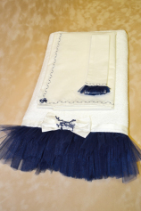 O lumanare de botez pentru fetite, decorata cu valuri de tul moale si dantela delicata.